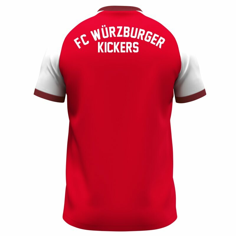 mit FWK Logo rot/weiß auf der Brust und FC Würzburger Kickers Schriftzug in Weiß auf der Rückseite